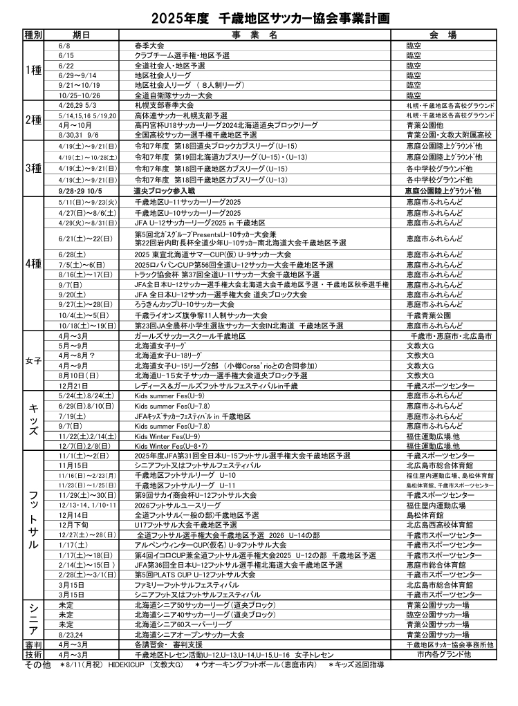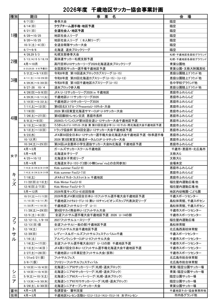 千歳地区サッカー協会 事務局スケジュール